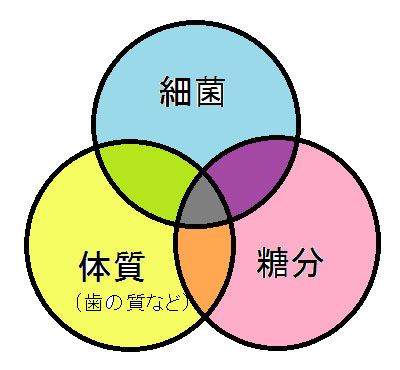 虫歯の原因には、主に下の図のようなものがあります。